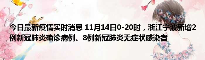 今日最新疫情实时消息 11月14日0-20时,浙江宁波新增2例新冠肺炎确诊病例、8例新冠肺炎无症状感染者