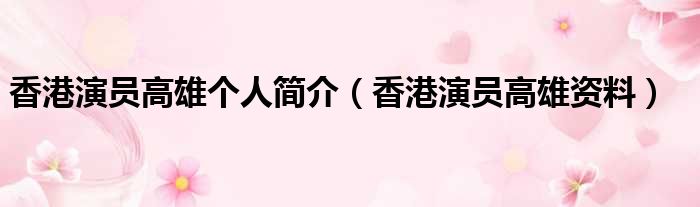 导读 大家好,今天小六子来为大家解答以下的问题,关于香港演员高雄个人简介,香港演员高雄资料这个很多人还不知道,现在让我们一起来看看吧!1、