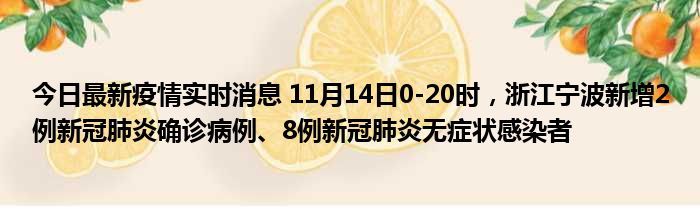 今日最新疫情实时消息 11月14日0-20时,浙江宁波新增2例新冠肺炎确诊病例、8例新冠肺炎无症状感染者