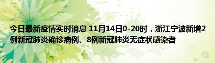 今日最新疫情实时消息 11月14日0-20时,浙江宁波新增2例新冠肺炎确诊病例、8例新冠肺炎无症状感染者