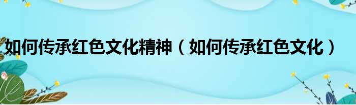 如何传承红色文化精神(如何传承红色文化)