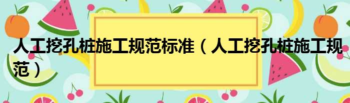 人工挖孔桩施工规范标准(人工挖孔桩施工规范)