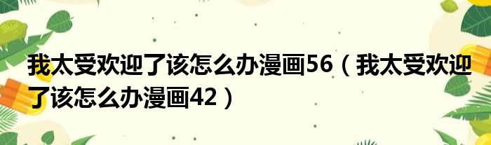 导读 大家好,今天小六子来为大家解答以下的问题,关于我太受欢迎了该怎么办漫画56,我太受欢迎了该怎么办漫画42这个很多人还不知道,现在让我们