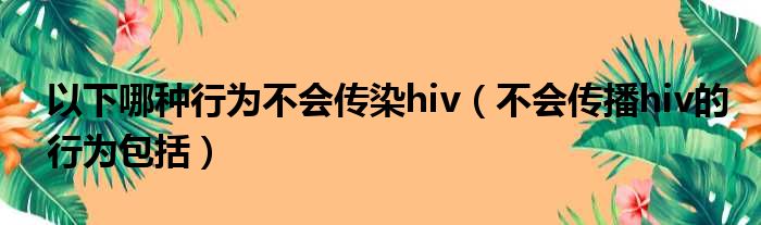 导读 大家好,今天小六子来为大家解答以下的问题,关于以下哪种行为不会传染hiv,不会传播hiv的行为包括这个很多人还不知道,现在让我们一起来看