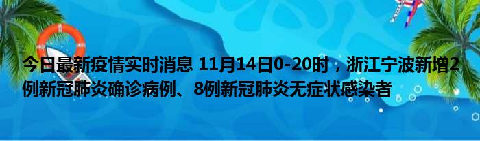 今日最新疫情实时消息 11月14日0-20时,浙江宁波新增2例新冠肺炎确诊病例、8例新冠肺炎无症状感染者