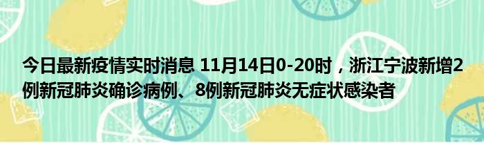 今日最新疫情实时消息 11月14日0-20时,浙江宁波新增2例新冠肺炎确诊病例、8例新冠肺炎无症状感染者