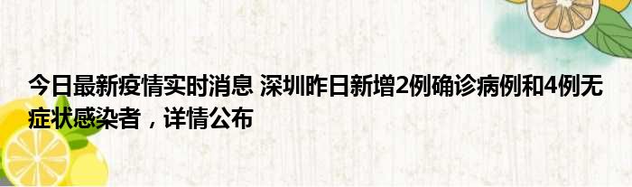今日最新疫情实时消息 深圳昨日新增2例确诊病例和4例无症状感染者,详情公布