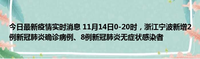 今日最新疫情实时消息 11月14日0-20时,浙江宁波新增2例新冠肺炎确诊病例、8例新冠肺炎无症状感染者