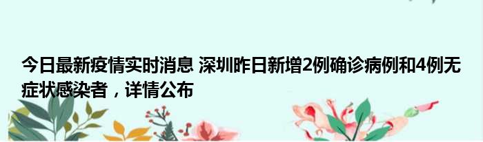 今日最新疫情实时消息 深圳昨日新增2例确诊病例和4例无症状感染者,详情公布