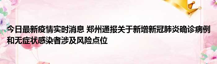 您的位置:首页 >房产频道 > 综合精选 > 今日最新疫情实时消息 郑州通报关于新增新冠肺炎确诊病例和无症状感染者涉及风险点位 2022-11-30 02:20:13 • 来源: 导读 免责声明:本文由用户上传,如有侵权请联系删除! 上一篇:梅花鹿的资料和特点(梅花鹿的资料) 下一篇:今日最新疫情实时消息 11月14日0-20时,浙江宁波新增2例新冠肺炎确诊病例、8例新冠肺炎无症状感染者