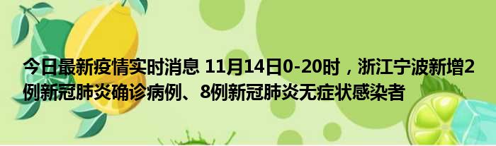 今日最新疫情实时消息 11月14日0-20时,浙江宁波新增2例新冠肺炎确诊病例、8例新冠肺炎无症状感染者
