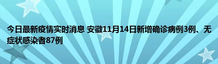 今日最新疫情实时消息 安徽11月14日新增确诊病例3例、无症状感染者87例