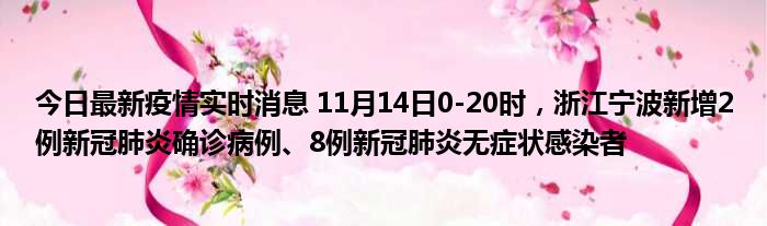 今日最新疫情实时消息 11月14日0-20时,浙江宁波新增2例新冠肺炎确诊病例、8例新冠肺炎无症状感染者