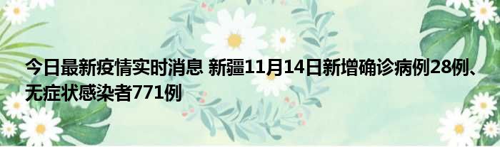 新疆卫健委通报,11月14日0时至24时,新疆维吾尔自治区新增确诊病例28例,新增无症状感染者771例,新增确诊病例治愈出院6例,新增无症状