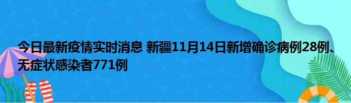新疆卫健委通报,11月14日0时至24时,新疆维吾尔自治区新增确诊病例28例,新增无症状感染者771例,新增确诊病例治愈出院6例,新增无症状