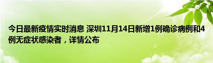 深圳卫健委通报,11月14日0-24时,深圳新增1例新冠肺炎确诊病例和4例新冠病毒无症状感染者