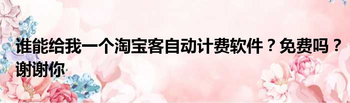 导读 大家好,今天小六子来为大家解答以下的问题,关于谁能给我一个淘宝客自动计费软件?免费吗?谢谢你这个很多人还不知道,现在让我们一起来看