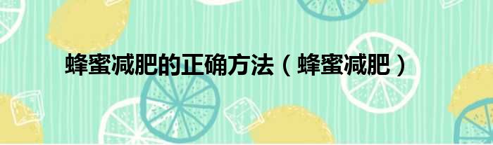 蜂蜜减肥的正确方法(蜂蜜减肥)