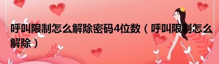 呼叫限制怎么解除密码4位数(呼叫限制怎么解除)