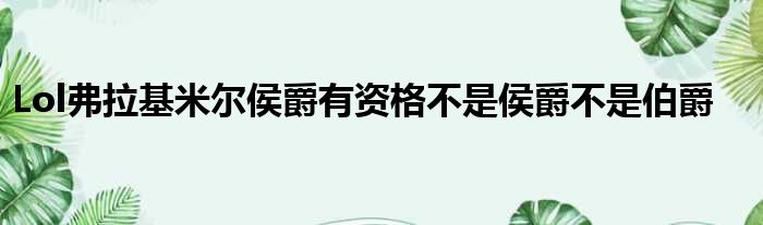 Lol弗拉基米尔侯爵有资格不是侯爵不是伯爵