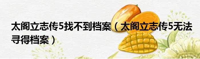 导读 大家好,今天小六子来为大家解答以下的问题,关于太阁立志传5找不到档案,太阁立志传5无法寻得档案这个很多人还不知道,现在让我们一起来看