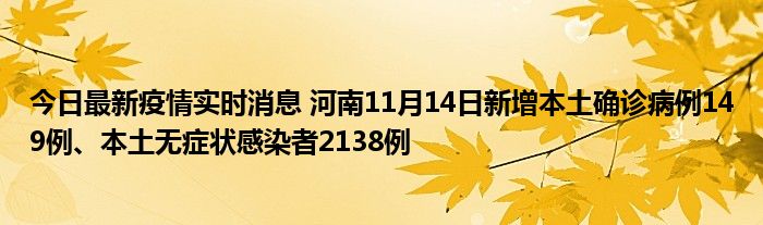 今日最新疫情实时消息 河南11月14日新增本土确诊病例149例、本土无症状感染者2138例
