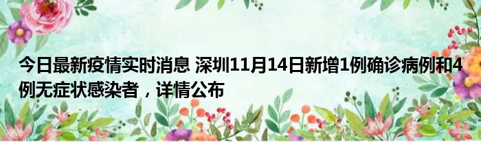 深圳卫健委通报,11月14日0-24时,深圳新增1例新冠肺炎确诊病例和4例新冠病毒无症状感染者
