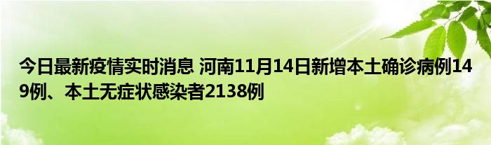 今日最新疫情实时消息 河南11月14日新增本土确诊病例149例、本土无症状感染者2138例