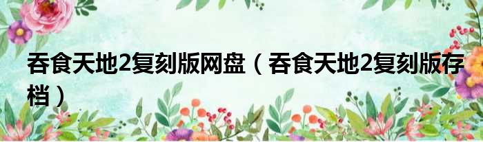 吞食天地2复刻版网盘(吞食天地2复刻版存档)