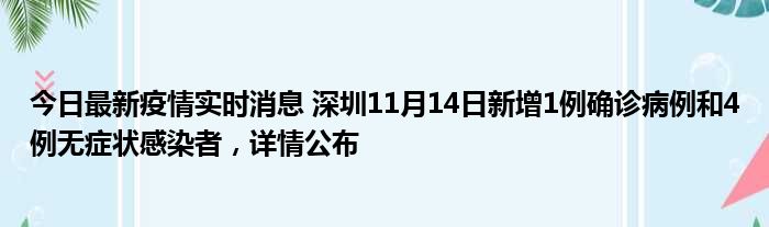 深圳卫健委通报,11月14日0-24时,深圳新增1例新冠肺炎确诊病例和4例新冠病毒无症状感染者