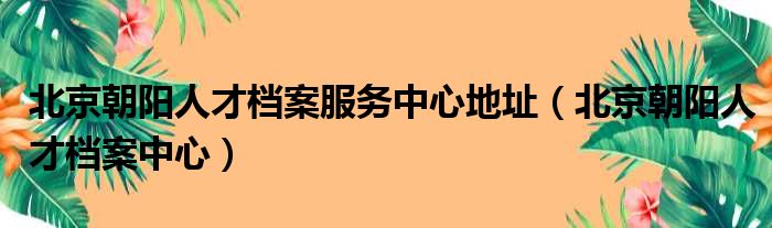 北京朝阳人才档案服务中心地址(北京朝阳人才档案中心)