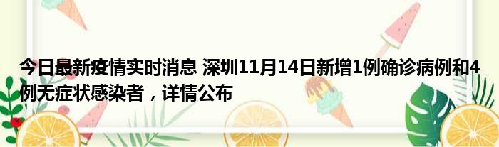 深圳卫健委通报,11月14日0-24时,深圳新增1例新冠肺炎确诊病例和4例新冠病毒无症状感染者