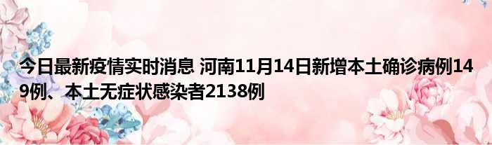 今日最新疫情实时消息 河南11月14日新增本土确诊病例149例、本土无症状感染者2138例