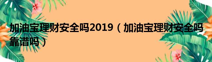 导读 大家好,今天小六子来为大家解答以下的问题,关于加油宝理财安全吗2019,加油宝理财安全吗 靠谱吗这个很多人还不知道,现在让我们一起来看
