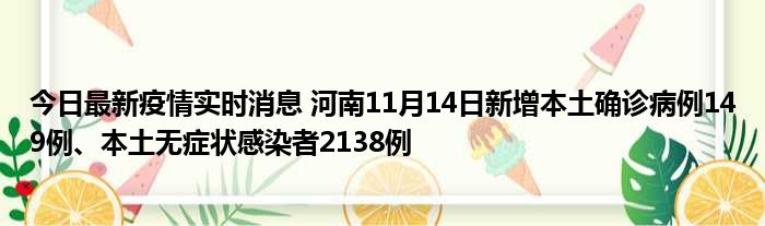 今日最新疫情实时消息 河南11月14日新增本土确诊病例149例、本土无症状感染者2138例