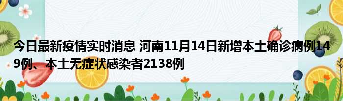 今日最新疫情实时消息 河南11月14日新增本土确诊病例149例、本土无症状感染者2138例