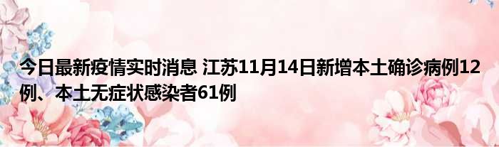 今日最新疫情实时消息 江苏11月14日新增本土确诊病例12例、本土无症状感染者61例