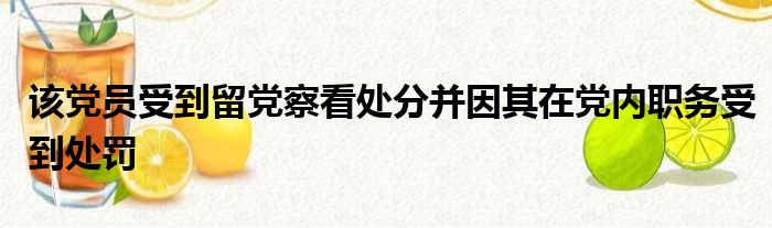 该党员受到留党察看处分并因其在党内职务受到处罚
