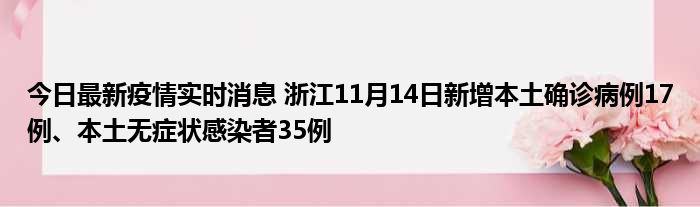 今日最新疫情实时消息 浙江11月14日新增本土确诊病例17例、本土无症状感染者35例