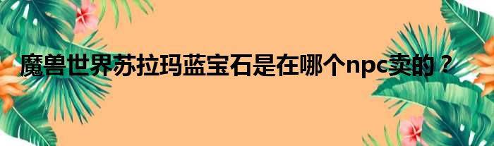 魔兽世界苏拉玛蓝宝石是在哪个npc卖的?