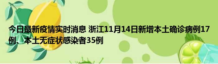今日最新疫情实时消息 浙江11月14日新增本土确诊病例17例、本土无症状感染者35例