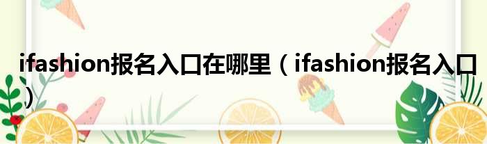 导读 大家好,今天小六子来为大家解答以下的问题,关于ifashion报名入口在哪里,ifashion报名入口这个很多人还不知道,现在让我们一起来看看吧!1