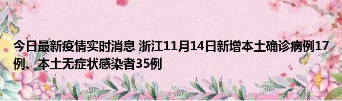 今日最新疫情实时消息 浙江11月14日新增本土确诊病例17例、本土无症状感染者35例