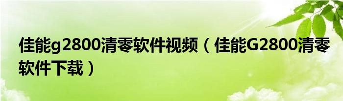 佳能g2800清零软件视频(佳能G2800清零软件下载)
