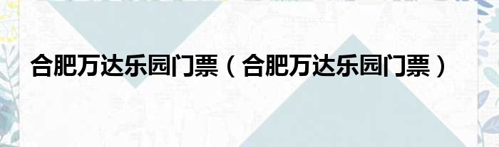 合肥万达乐园门票(合肥万达乐园门票)