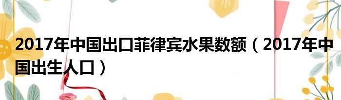 导读 大家好,今天小六子来为大家解答以下的问题,关于2017年中国出口菲律宾水果数额,2017年中国出生人口这个很多人还不知道,现在让我们一起来