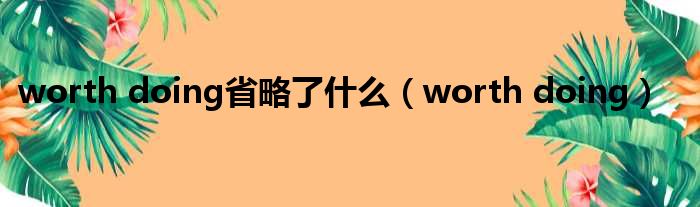 导读 大家好,今天小六子来为大家解答以下的问题,关于worth doing省略了什么,worth doing这个很多人还不知道,现在让我们一起来看看吧!1、1