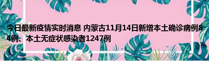 今日最新疫情实时消息 内蒙古11月14日新增本土确诊病例84例、本土无症状感染者1247例