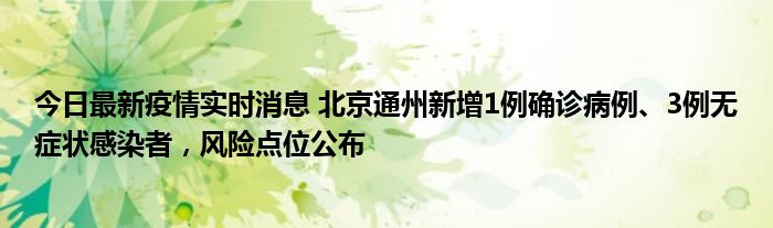 今日最新疫情实时消息 北京通州新增1例确诊病例、3例无症状感染者,风险点位公布