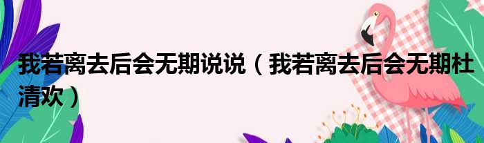 导读 大家好,今天小六子来为大家解答以下的问题,关于我若离去后会无期说说,我若离去后会无期杜清欢这个很多人还不知道,现在让我们一起来看看